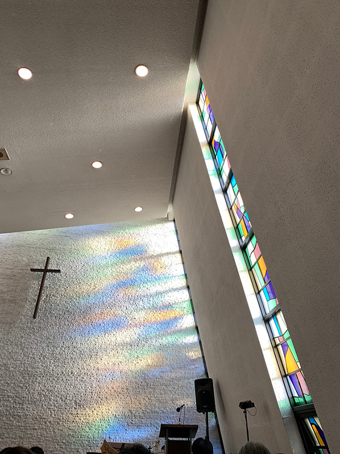 会場となった教会のステンドグラス越しに差し込む七色の光が、時間の移ろいと共に変化するさまは、まるでモネの絵画のようだ。